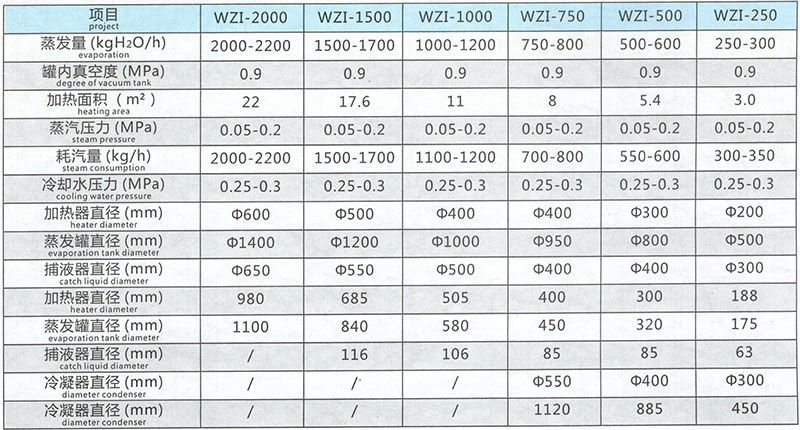 WZⅠ型有一效、二效、三效系列規(guī)格,另有Q型為強制外循環(huán)蒸發(fā)器。本品可廣泛用于醫(yī)藥、食品、化工、輕工等行業(yè)的水或有機溶劑的蒸發(fā)濃縮。特別適用于熱敏性物料,(例如中藥生產(chǎn)的水、醇提取液、抗生素發(fā)酵液、牛奶、果汁等),在真空條件下進行低溫連續(xù)濃縮,可確保產(chǎn)品質(zhì)量。